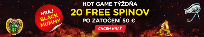 ETipos ako najväčšie slovenské online kasíno, ponúka na víkend 20 spinov zdarma na vybraný automat v bonuse HOT GAME týždňa. Pre tento týždeň je možné získať 20 spinov zdarma na hre BLACK MUMMY. Podmienkou pre získanie otočov zdarma je, že potrebujete otočiť na tejto hre 50 € v daný deň. Takto viete získať otoče zdarma každý deň v týždni. Preto sa to určite oplatí vyskúšať, pretože aj z 20 otočov viete získať krásnu výhru. Hodnota otoču je 0,20 €/otoč.