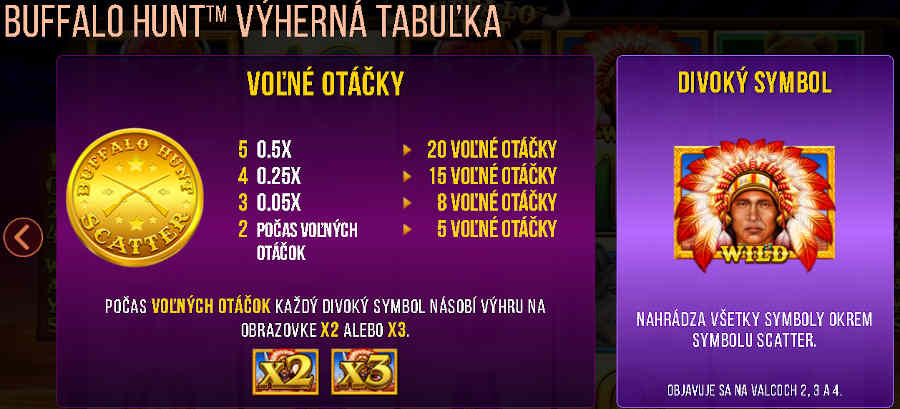 Buffalo Hunt je poľovačka na byvola, ktorý ako najvyšší  symbol prináša výhry, na ktoré všetci čakáte. Okrem tohto dôležitého symbolu sa tešte na: