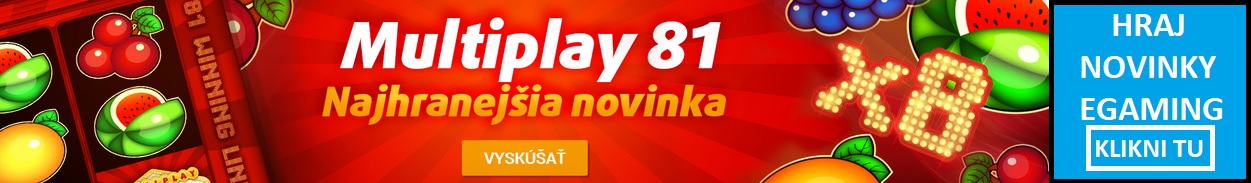 Áno, len pre týždňom boli spustené TOP online automaty z dielne Egaming v Tipsport kasíne  a už tu máme jeden online automat, ktorý sa vyníma pred ostatnými. Vedeli sme, že MULTIPLAY 81 je obľúbený automat v kamenných prevádzkach, ale že to bude až tak hrajúce v online kasíne, to prekvapilo. Zatiaľ si túto novinku zahráte len v Tipsport kasíne a preto ju promujeme. Klasický automat s 4 valcami a 3 radami s ovocnými symbolmi Vás určite dostane do hry. Až 81 výherných línií robí z tejto hry zaujímavú pre všetkých hráčov.